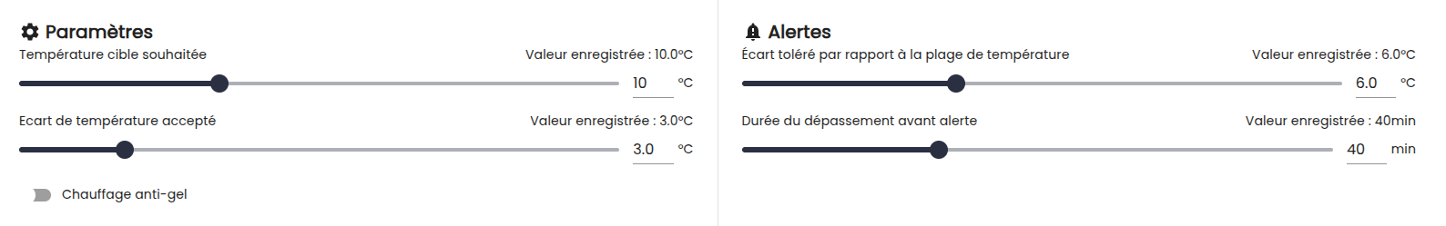 - Consigne réglable à 0.5°C (au lieu de 1.0°C) et ajout de champ textuel